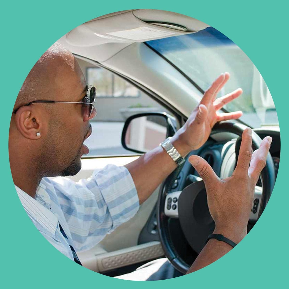 Our senses help us take in information about the world around us. Look at the photo of an angry man driving a car. Imagine being part of the scene and engaging all five senses.